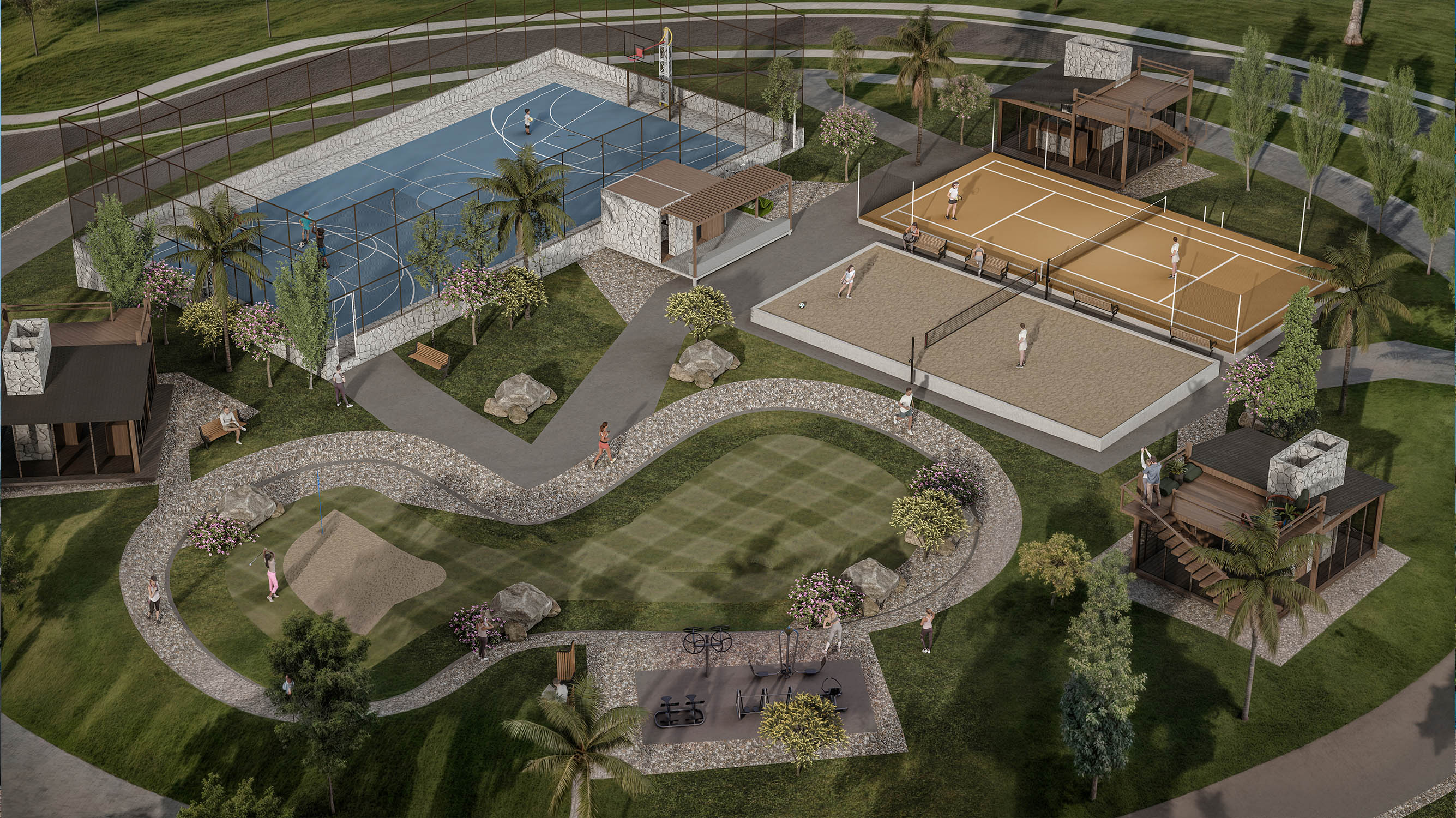 Espaços como Clubhouse, Sportclub e Riverpark.
